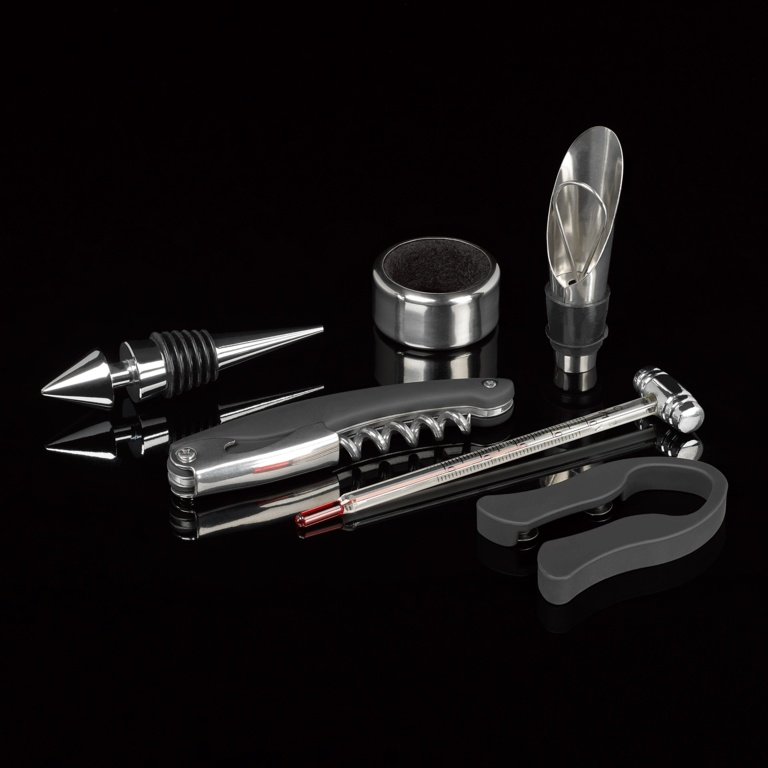 The Tala Wine Lovers Gift Set includes a waiter’s friend corkscrew wine stopper foil cutter wine pourer wine collar and a thermometer to ensure your wine is at the perfect temperature.