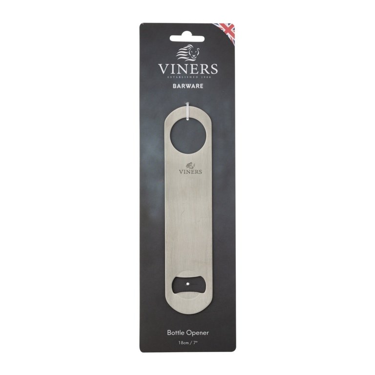 A simple and easy way to open capped bottles, the flat bottle opener is a true bartenders friend. Featuring a bottle cap remover on one end and a hanging hole on the other end. | Made from durable stainless steel with a brushed finish. | Measures 18cm in length. | Hand wash with warm soapy water and dry immediately. | Entertain, create and serve with flair and quality thanks to the Viners Barware Collection. Our range has all the tools to professionally entertain guests at home. | Viners has existed for over 110 years and has become a much-loved British brand and household name, steeped in heritage.
