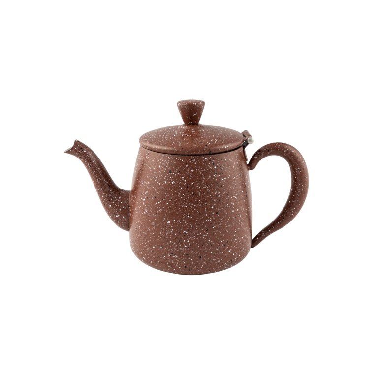 Premium quality stainless steel tea pot with a unique granite effect finish. | With an integrated strainer, non-drip spout, hinged lid and stay-cool hollow handle.