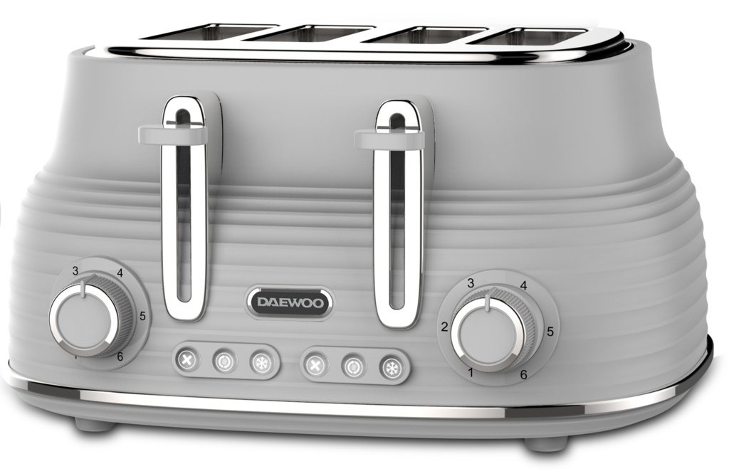 Stylish corrugated textured design | Reheat and defrost functions | 6 browning control settings | High-lift lever | Removable crumb tray | Matching kettle and accessories available | Dimensions: 35L x 31.5W x 18.5H cm