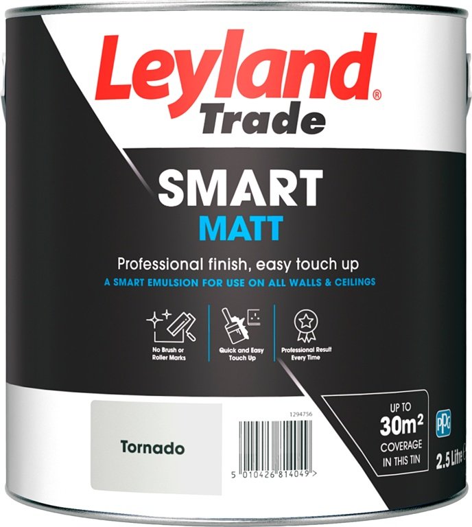 Leyland Trade Smart Matt is specially formulated to avoid brush and roller marks when painting interior walls and ceilings. Quick and easy touch up when applied to damaged areas. Professional result with every application. | Covers approx.12m?2/Litre Allow 4 hours between coats