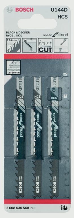 They are suitable for jigsaws with U-shanks (universal shanks) from all power tool brands. The U 144 D Speed for Wood Jigsaw Blade delivers fast straight cuts in wood. Its sharp-ground, side-set teeth enable quick results. The high carbon steel blade material is appropriate for softwood and non-abrasive woodworking materials. Additionally, its large progressive tooth pitch (4-5.2 mm) enables the blade to cut a variety of wooden materials with 5-50 mm thickness.
