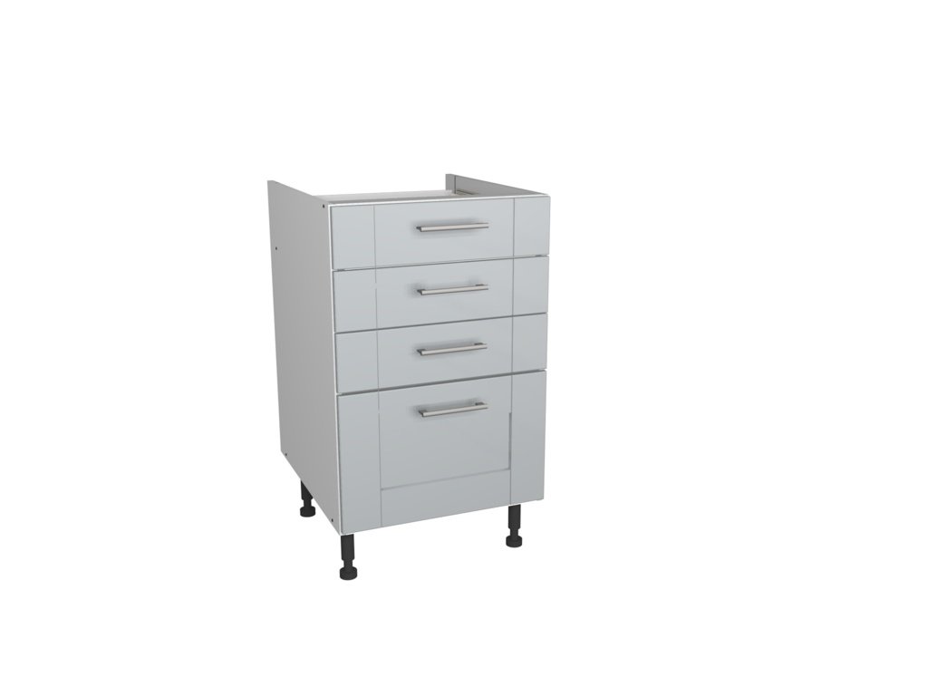 16mm white MFC cabinet – Creates a strong, rigid unit with a clean white interior. | Cam and dowel construction – Simple and strong construction. | 57mm service gap – Enables pipes to be hidden and maximises storage space. | Two alternative shelf positions – Maximise space by tailoring storage. Strong metal supports. | 3-way adjustable metal hinges – Door can be perfectly aligned quickly and easily. | Fully adjustable base unit legs – Cabinets can be easily adjusted for uneven floors. | Metal sided, soft-close drawer-box. 16mm mfc bottom and back. Smooth runner action and very strong. Can hold up to 25kg. | Four way drawer fascia adjustment. Quick and easy to align fascia during installation. | Fully adjustable wall hanging brackets – Provides a strong fixing method and enables the cabinet to be perfectly aligned during installation. | 704mm high wall unit and 330mm deep cabinet excluding doors. New improved specification with increased storage capacity. | Plant-on ends optional, ease of fit a colour co-ordinated panel for use at the end of a run of units; or around wall units each side of the hob area. Oversized to allow for scribing against uneven walls.